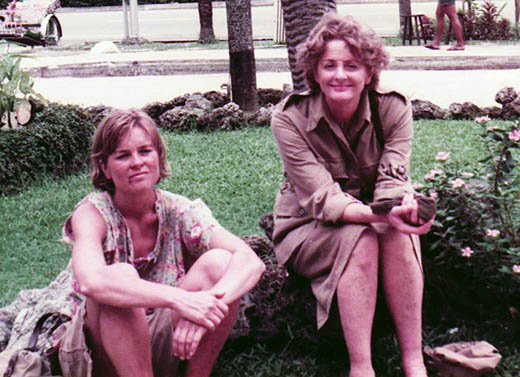 Elspet with Claire Oberman on Raffles front lawn (Cindy Shelley)