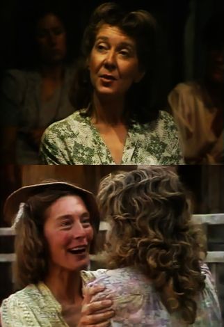 The character and motivations of the ice-cool Verna Johnson are arguably the most intriguing aspect of the new regime. This intrigue partly arises from the fact that she remains out of sight for a good proportion of the episode and yet is important enough for other new characters to mention her. When she finally does appear on her verandah, after a tenko that apparently doesn’t apply to her, the exaggerated courtesy with which she greets the new arrivals (‘Won’t you all sit down so that I can?’), her elegant appearance, and the fact that she proceeds to ‘hold court’, all come together to suggest a thoroughly self-serving woman who revels in the position she has found herself in or, more likely, has created for herself. When she explains that it is her ‘miserable fate to be in charge of distribution,’ which she claims she’d happily exchange for shifts at the factory because ‘it’s a thankless task,’ it is very difficult to believe her, partly because of her manner, but mainly because she is far too perfectly coiffured for this to be true. In effect, her vanity betrays her. Further conclusions can be drawn from the fact that she is the owner of the cat which the women heard earlier. The existence of a healthy cat in the camp strikes as nothing less than disgusting when we know of at least one woman in the hospital, the charmingly garrulous Betty, who is suffering from malnutrition. Despite Verna’s assertion that she tries ‘to leave a little food in hand for those most at risk,’ she clearly doesn’t try too hard. That in dopey Daisy, even within the constraints of a prison camp, Verna has effectively managed to secure herself a ladies’ maid is further evidence of the sort of woman she is. She even considers it appropriate to complain about her as if she were having a ‘you can’t get the staff’ conversation in a drawing room.