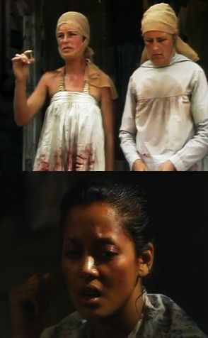It is hardly surprising that Blanche’s inability to do anything about Rose’s situation leads her to channel her energies elsewhere, initially into a rather inane, if amusing, prank which sees Miss Hasan come face-to-face with a large rat. However, it is when Blanche’s restless attention settles on another target that her inner turmoil is in danger of leading to a deplorable miscarriage of justice. The first indication of her suspicions about Christina’s guilt comes in a scene in the cookhouse in which she wastes no time telling Dorothy and Joss, in a typically direct way, what she is thinking: ‘The chilli cracker, look at her, fresh as a dawn daisy, makes me puke… She’s getting extra rations from somewhere, I’d stake my life on it, but what with, eh?’ Blanche calling Christina a ‘chilli cracker’ is nothing new, but using the term pejoratively is. As Blanche needs to find Rose’s betrayer in order to recompense for what has happened to her friend and to offset her personal guilt for not staying on lookout on the night in question, she is not above making Christina fit the bill at all costs, subconscious process or not. By the time Beatrice delivers her report on Rose’s health, it is clear from the way that Blanche eyes up Christina that she has made up her mind. Regrettably Blanche is encouraged in such thoughts by Dorothy, who in a mock Chinese accent describes the Eurasian as: ‘Sweet little Christina. Belle of HQ,’ and comments on how she is ‘nice and cosy in an office,’ before later, and quite incredibly, asking: ‘Anyway, what do we know about her? Nothing! She never argues. Never says a bloody thing,’ as if her quiet character is all the evidence they need to convict her. Besides, we know this just isn’t true, especially towards the end of her time in the first camp when she started to gain the confidence to come out of herself. Blanche takes the racist polemic several stages further: ‘And she speaks their lingo. And is half one of them, come to that. And you know what they say about chilli crackers. They are neither fish nor fowl! Be honest.’ It is difficult to hear this coming from the lips of one of the series’ most endearing characters, but having Blanche say this, rather than someone like Van Meyer or Verna, makes the point so much more effectively: given the right, or rather wrong, circumstances, ‘good’ people are just as capable of blatant and inexcusable racism.